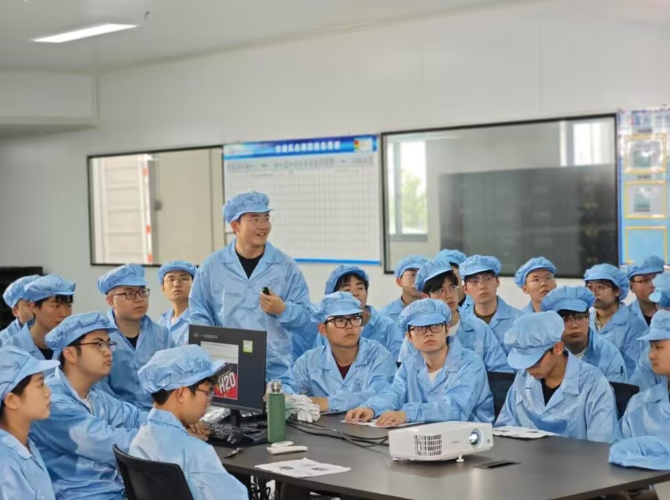 2025年4月25日,必赢3003no1线路检测中心鲍婕教授团队将《表面贴装技术》实践课堂搬入黄山市瑞兴汽车电子有限公司的生产现场,示范了“教室+车间”双向联动的教学新模式。这是学院深化产教融合、推进应用型人才培养的重要实践。