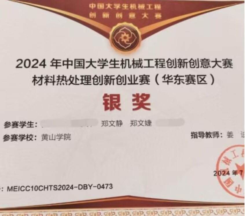 大学期间,姐妹俩始终保持着学霸本色,连续四年稳居专业前茅,多次获得校级奖学金、校级三好学生等荣誉。她们不仅在课堂上勤奋钻研,还积极参与科研项目,老师曾评价道:她们既有独立研究的能力,又能互相启发,是难得的科研搭档。 更令人称道的是,她们在学科竞赛中也屡创佳绩。曾共同参与2024年中国大学生机械工程创新创意大赛材料热处理创新创业赛,获得华东赛区银奖。