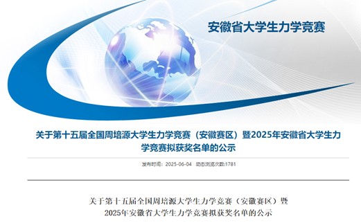 近日,由安徽省教育厅主办的第十五届全国周培源大学生力学竞赛(安徽赛区)暨2025年安徽省大学生力学竞赛成绩公布。必赢官网参赛的9名选手全部获奖,其中一等奖1项、二等奖3项、三等奖5项,本次竞赛必赢官网首次获得一等奖,实现了历史性突破。