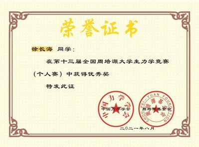 必赢官网学子首次在第十三届全国周培源大学生力学竞赛中荣获国家奖项。其中,1人获全国三等奖,1人获全国优秀奖,1人获安徽省一等奖,5人获安徽省三等奖。