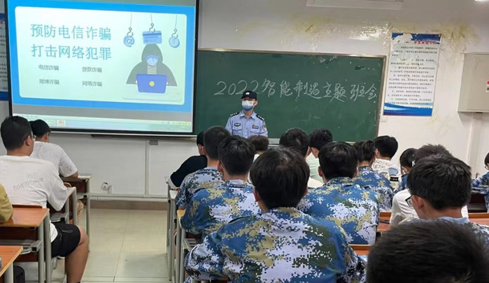 学院各新生班级邀请阳湖派出所宣传民警走进教室,详细介绍各类网络电信诈骗案例,指导学生学会信息甄别,消除侥幸心理,拒绝各类诱惑,防范网络电信诈骗的发生。
