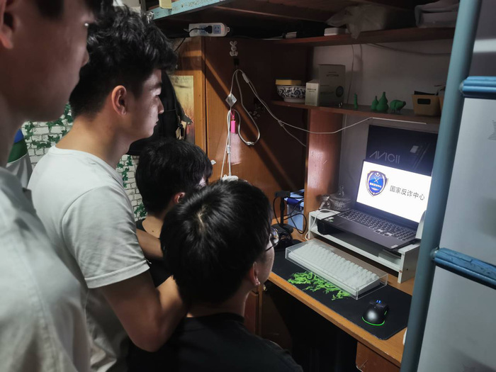 图:学生宿舍内集中观看网络安全课程
