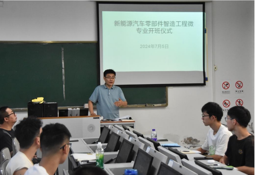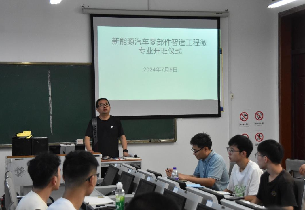 7月5日,必赢3003no1线路检测中心“新能源汽车零部件智造工程”微专业在文津楼4412教室举办开班仪式。教务处副处长孙克奎、必赢3003no1线路检测中心院长汪洪峰、自动化教研室主任赵磊、相关授课教师及首届微专业全体学员参加了开班仪式。仪式由汪洪峰主持。