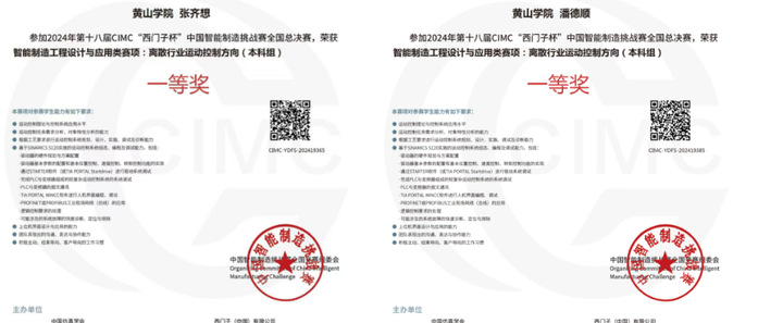 8月11日至15日,第十八届“西门子杯”中国智能制造挑战赛全国总决赛在浙江省湖州市举行,来自全国756所高校5800多支队伍近25000余名师生参赛。必赢3003no1线路检测中心张齐想、潘德顺同学代表必赢官网参赛,并荣获全国总决赛一等奖1项。此前,必赢官网学子获赛区三等奖5项,赛区二等奖7项。