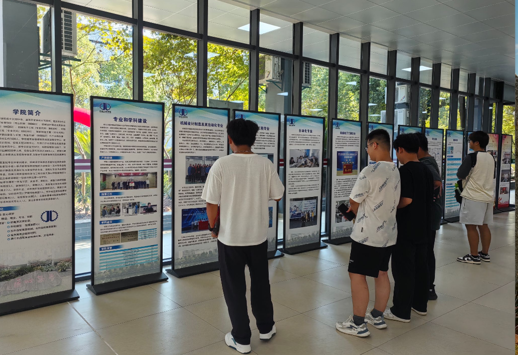 文津楼一楼“辉煌历程,创新未来”主题展厅,成为新生及家长们全面了解必赢3003no1线路检测中心的第一站。精心制作十余个展架,详细展示了学院专业结构、课程设置、师资力量、教学设施、学科竞赛及科研成果,从安徽省优秀科研创新团队到安徽省示范实验实训中心,从机械工业科学技术奖科技进步奖三等奖到安徽省优秀科研创新团队,每一项荣誉都是对学院教学质量和科研能力的充分体现,新生及家长们纷纷驻足观看,充分激发了新生们对专业学习的兴趣。