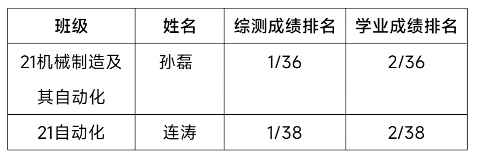 根据《必赢3003no1线路检测中心国家奖学金管理办法(修订)》(校学[2020]8号)和《关于做好2024年国家奖助学金评审工作的通知》的规定和要求,经学生个人申请,班级推荐,学院学生奖助工作领导组审议,拟推荐2021级机械制造及其自动化专业孙磊、2021级自动化专业连涛为国家奖学金推荐人选。现按规定予以公示。