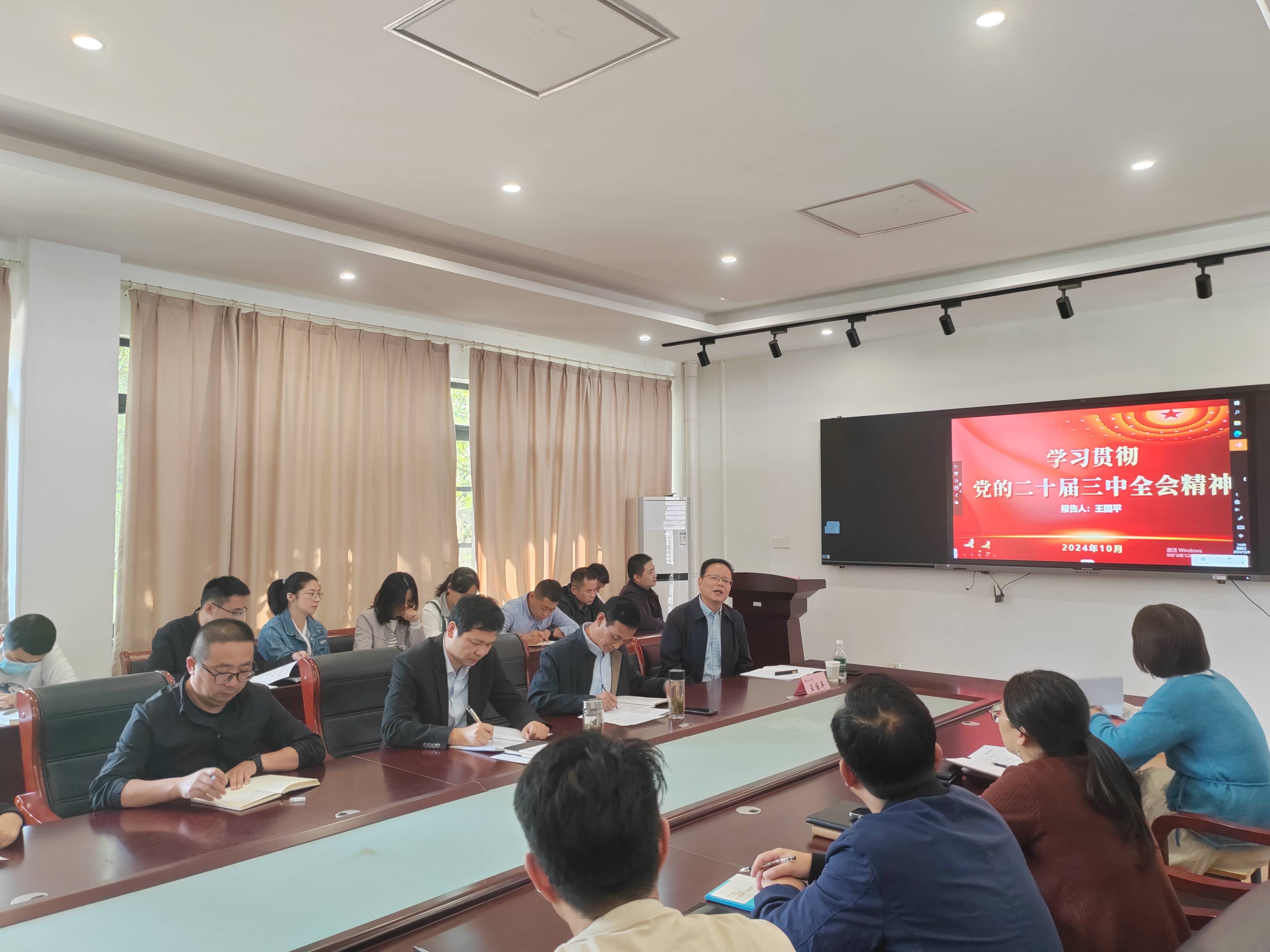 为全面深入学习贯彻党的二十届三中全会精神,深化教育综合改革,推进学院高质量发展,10月9日下午,校纪委副书记王国平应邀到必赢3003no1线路检测中心作学习贯彻党的二十届三中全会精神宣讲报告。会议由学院党委副书记(主持党委工作)汪双安主持,全体教职工参加会议。