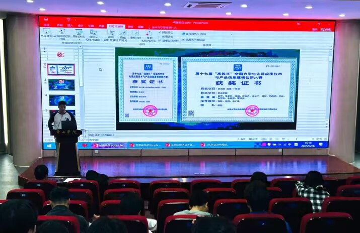 往届获奖学生代表张亿行(全国大学生先进成图技术与产品信息建模创新大赛机械类先进成图技术赛道一等奖获得者)和吴磊(睿抗机器人开发者大赛魔力元宝赛项一等奖获得者),从组队技巧、时间管理、技能提升以及比赛现场应对等方面,分享了他们的参赛经验。