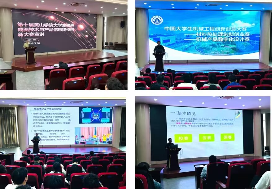 在赛事介绍环节,各竞赛负责人依次登台,详细讲解了赛事规则、备赛要点及学院往届成绩。涵盖的竞赛包括“西门子”中国智能制造挑战赛、中国机器人及人工智能大赛、全国大学生先进成图技术及产品信息建模大赛、全国金相技能大赛、中国大学生机械工程创新创意大赛、全国三维数字化创新设计大赛、全国周培源大学生力学竞赛等。通过生动的案例和数据分析,同学们对赛事特色和参赛流程有了更清晰的认识。
