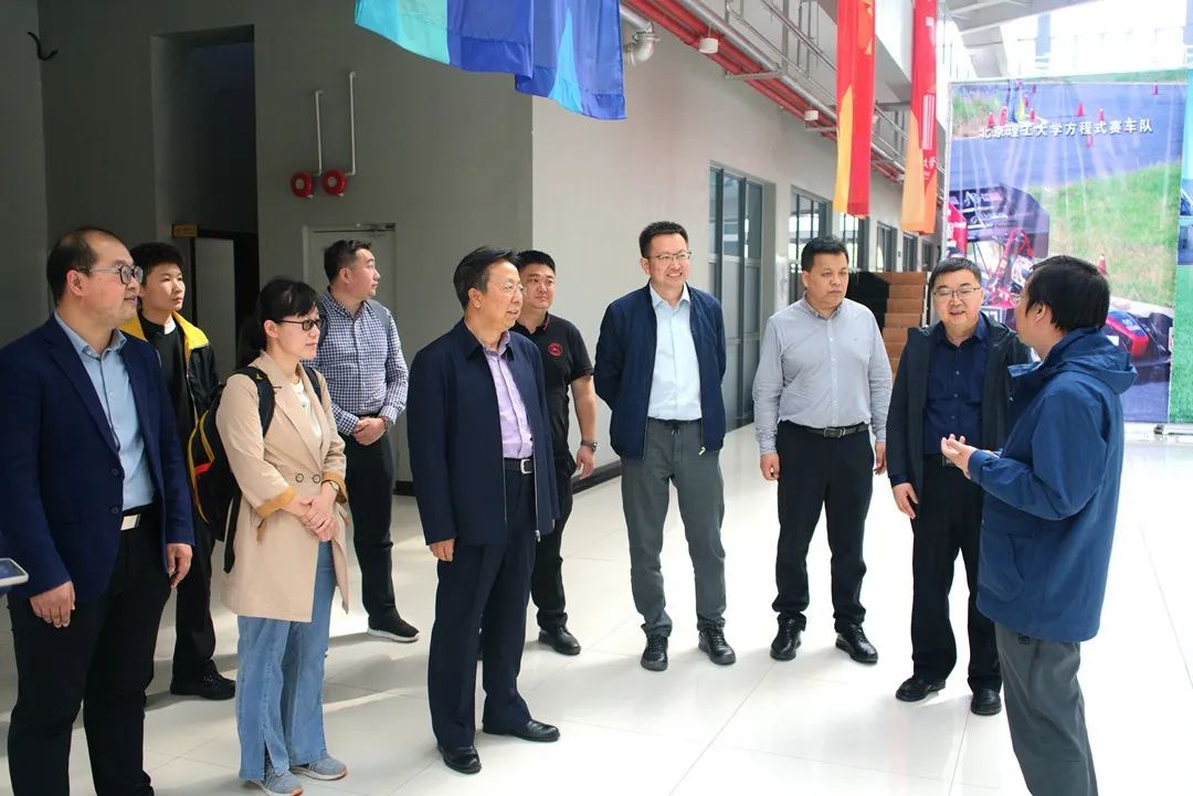 在北京理工大学,玉柱、林民一行参观了地面机动装备国家级实验教学示范中心、机器人实验中心等地,相关负责人重点介绍了地面机动装备类型及技术,探讨了学生参与方式、重点实验室建设思路及科研成果转化的新模式。
