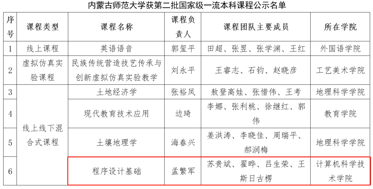 4月11日,教育部高等教育司发布了《关于第二批国家级一流本科课程认定结果的公示》,Beat365程序设计基础教学团队负责建设的《程序设计基础》课程名列其中,是Beat365被认定的第二门国家一流线上线下混合式一流课程。