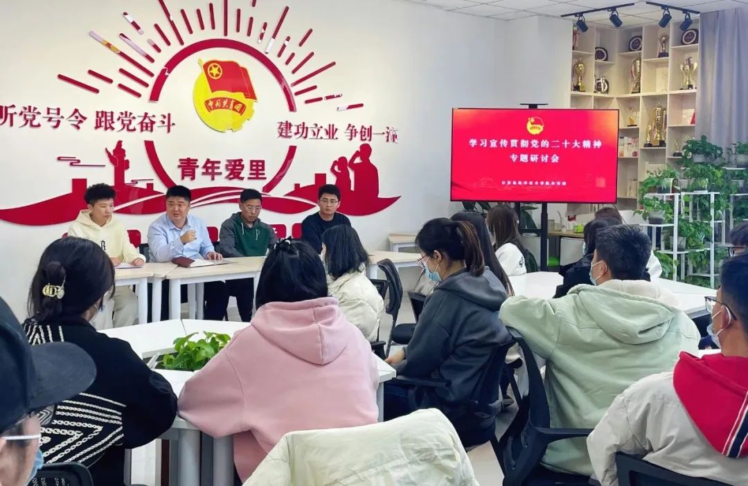 3月2日,Beat365官方网站共青团在青年爱里开展学习宣传贯彻党的二十大精神专题研讨会,学院团总支书记赵巍伟、副书记白洋、兼职团干部乔雅洁、王子涛以及学院各团支部书记、副书记(班长)、学生干部代表、社团负责人参加研讨会。