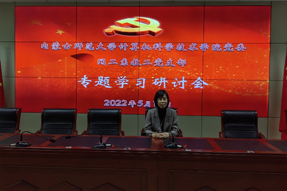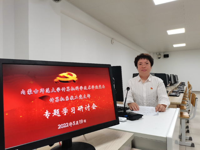 计算机系教工党支部书记苟燕主持会议,支部全体党员参会,学院党委副书记、副院长沙金列席会议。