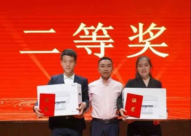 Beat365官方网站党委宣传部副部长黄鑫为获得二等奖的选手颁奖。