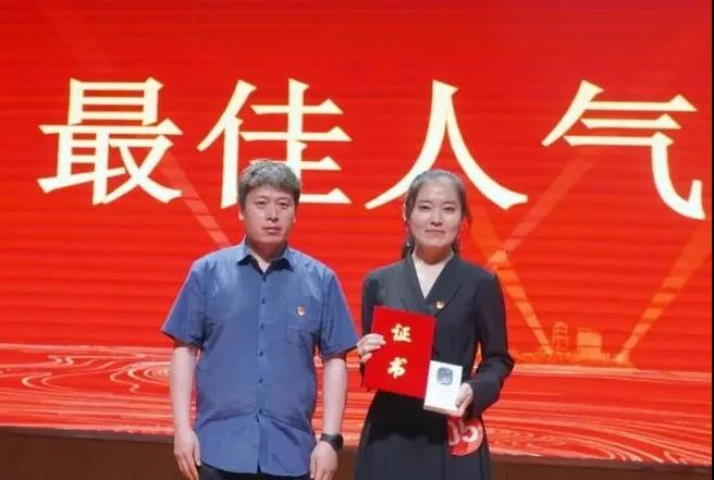 校团委副书记那日苏为获得“最佳人气奖”的选手颁奖。