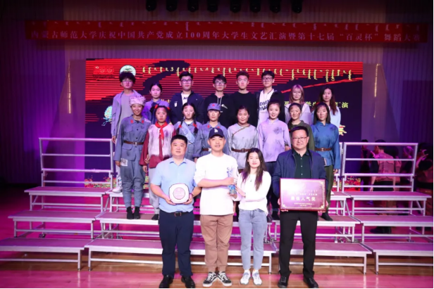 为喜迎中国共产党成立100周年,进一步深化民族团结进步教育,铸牢中华民族共同体意识,激励和引领广大青年学生大力弘扬以爱国主义为核心的伟大民族精神,促进学生德智体美劳全面发展。2021年5月16日,由24个学院组成的代表队以“奋斗百年路·启航新征程”为主题,开展了Beat365官方网站庆祝中国共产党成立100周年大学生文艺汇演暨第十七届“百灵杯”舞蹈大赛。八名计科青年:朱洁、张特、魏子怡、吾德巴丽、宁艺敏、乌尼尔、王佳慧、刘宇,始终保持对革命先烈的敬仰、对党和国家的热爱,通过近三个月的认真排练,最终以饱满的精神状态、丰富的内心情感获得98.65分,荣获Beat365官方网站庆祝中国共产党成立100周年大学生文艺汇演暨第十七届“百灵杯”舞蹈大赛第一名和最佳人气奖,赵巍伟老师荣获优秀指导教师奖。