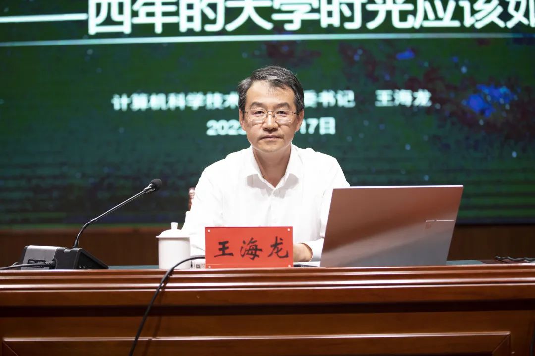 王海龙书记从“规划大学四年”“励志成长成才”“培养兴趣爱好”告诉同学们应当转变学习的态度——从“要我学”到“我要学”,从“被动性学习”到“自主性学习”,从“只读有字书”,到“既读有字书,也读无字书”,要善于向课堂学、向同学学、向老师学、向实践学。希望同学们能够树立正确的世界观、人生观、价值观,立大志、明大德,不跟风、不盲从,学会独立思考,在大时代大变局中找准人生坐标,将青春奋斗融入社会进步的潮流。成为一名有理想信念,有道德情操,有扎实学识,有仁爱之心的德智体美劳全面发展的社会主义合格建设者和可靠接班人。