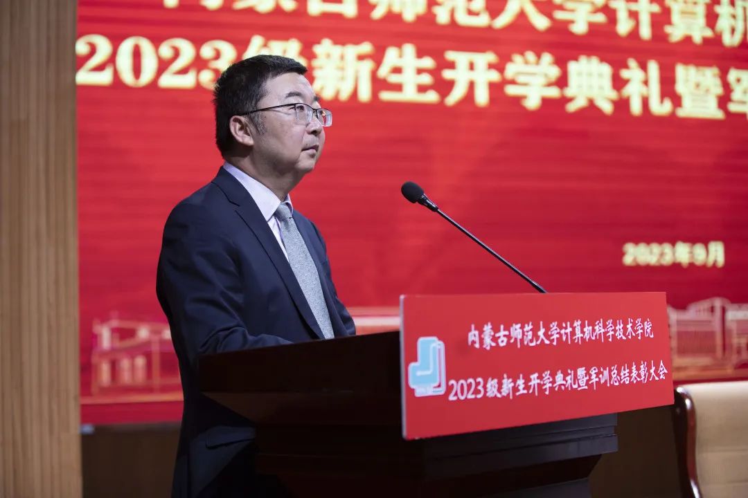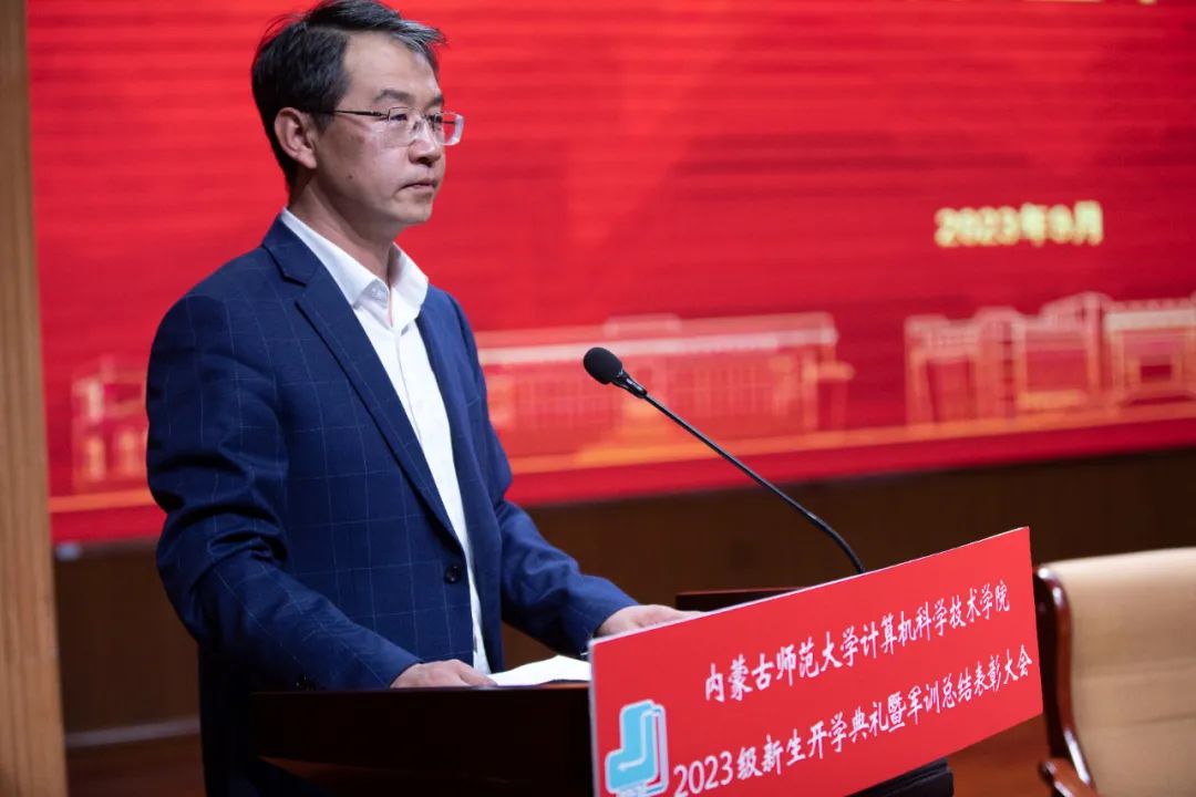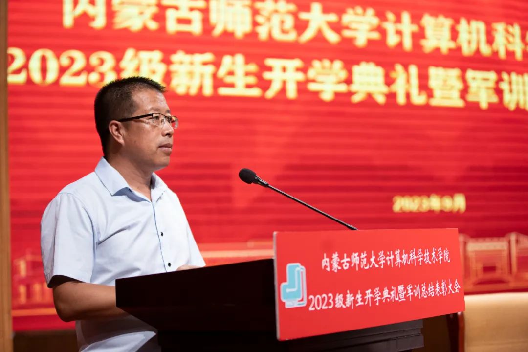 Beat365官方网站党委书记王海龙,Beat365官方网站党委副书记、院长、博士生导师林民,副院长斯琴图,计算机系主任朝力萌,网络与软件工程系主任孟繁军,副主任葛湘巍、徐行健,数据科学与人工智能系副主任包萨仁娜,全体新生班辅导员以及Beat3652023级373名本科生和59名研究生出席大会。学院团总支书记赵巍伟主持大会。