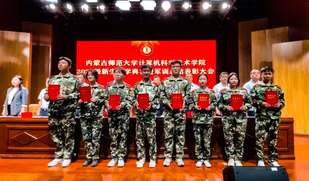 计算机系主任朝力萌老师宣读2023年度军事技能训练校级标兵名单,并颁奖。