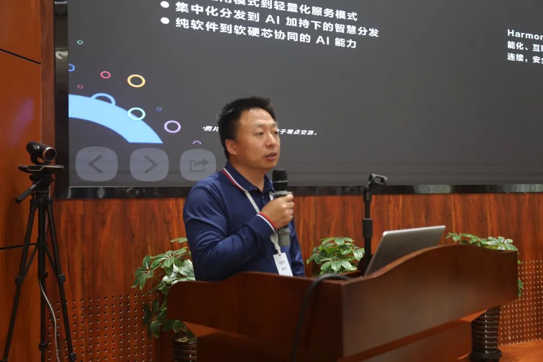 聊城大学计算机学院副院长李成友结合聊城大学计算机学院创新教学和实践教学方面的重要探索经验,进行主题为《创新教学实践分享与HarmonyOS人才建设思考》的分享,就学院利用项目驱动和案例教学激发学生的创新思维和工程技能,构建与社会需求相匹配的课程体系、完善教学质量保障机制进行介绍。希望通过建立校企合作平台,共同开发课程和实训项目,以培养具备HarmonyOS开发技能的人才。