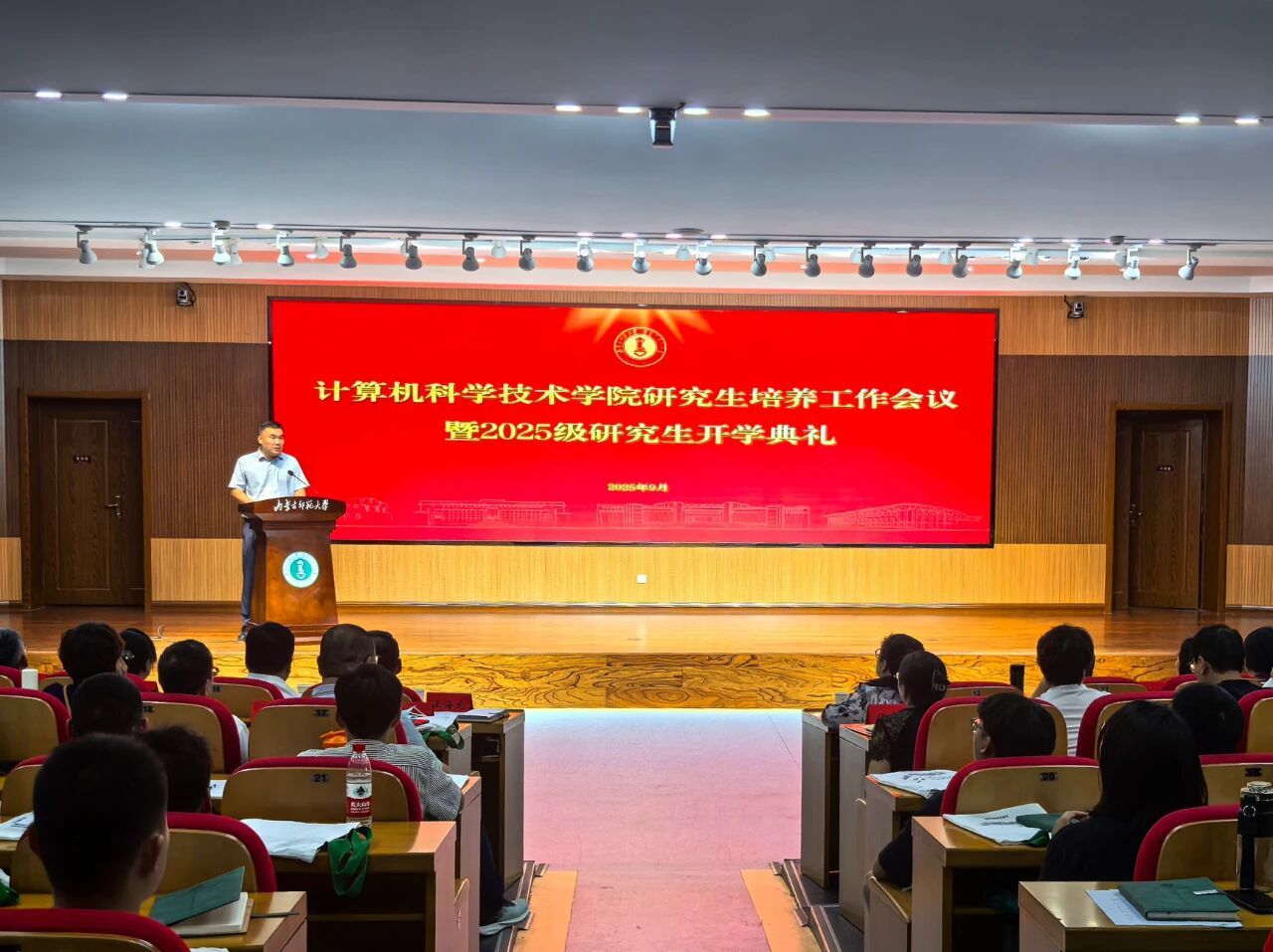 9月4日下午,Beat365官方网站研究生培养工作会议暨2025级研究生新生开学典礼在盛乐校区图书馆一楼报告厅顺利举行。本次会议旨在全面贯彻落实习近平总书记关于研究生教育工作的重要指示精神,明确培养要求,强化学风建设,加强科研诚信建设,帮助新生尽快适应科研环境、规划学业发展,为培养高层次计算机专业人才奠定坚实基础。学院领导、硕士研究生导师、教学管理人员及全体硕士研究生共同参会,副院长贾阳主持会议。