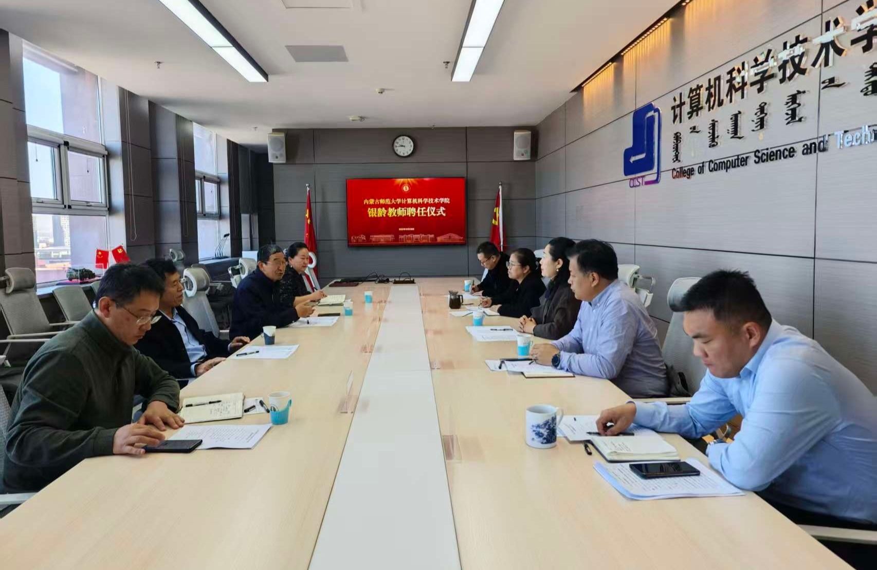 10月30日上午,Beat365官方网站在盛乐校区理工楼A座912会议室隆重举行银龄教师聘任仪式,正式聘请陈兵旗、孙瑞志两位资深教授为学院银龄教师。仪式由学院党委书记乌日其木格主持,校人事处副处长张艳英、人事科科长王白古拉及学院党政领导班子共同参加。