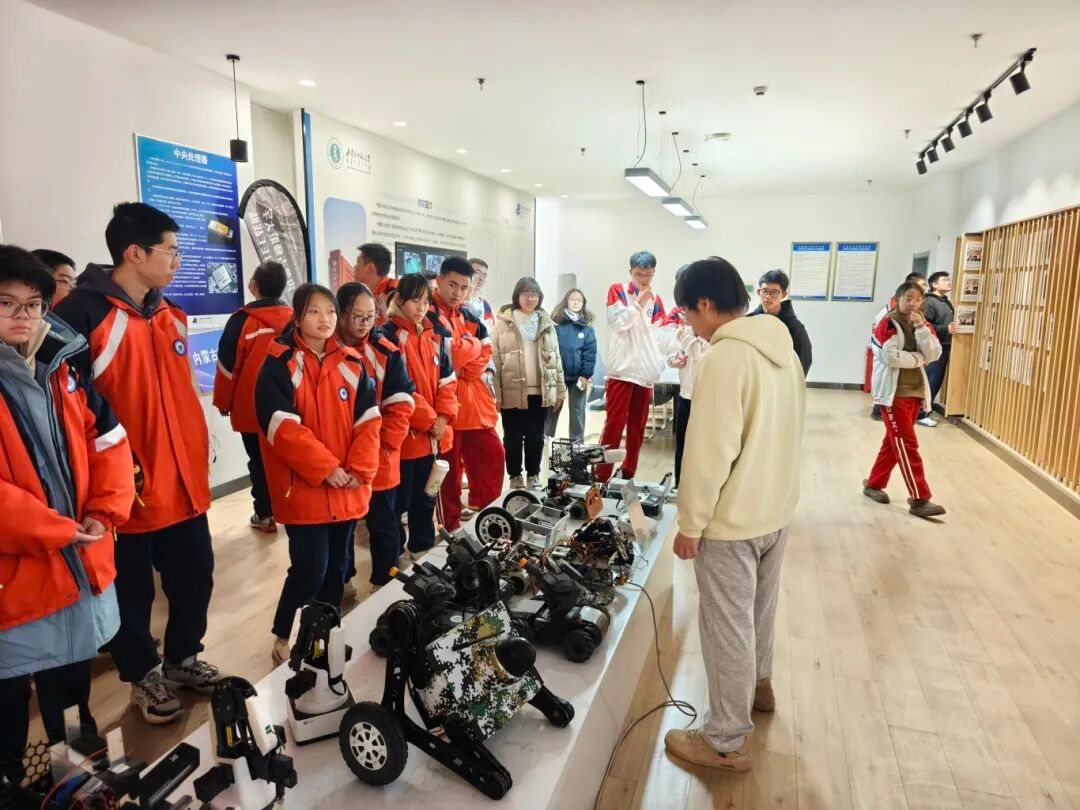 在机器人与人工智能创新中心,师生们近距离考察了Beat365重点建设的双创孵化平台。中心集中展示了Beat365在多项国家级机器人赛事中获奖的自主研发成果,包括视觉机器人、轮腿机器人、平衡车、自适应机械臂等智能系统。现场演示了机器人在自主导航、动态抓取等方面的先进功能,研发团队鼓励高中生积极参与全国青少年机器人竞赛等相关赛事,在实践中锻炼创新能力。