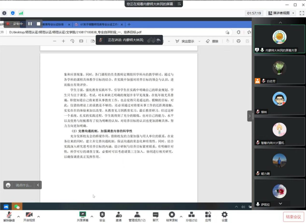 会议上,林民院长就师范类专业认证自评报告中八个模块的撰写明确了分工,提醒撰写人员需要注意的问题,包括文字的表述、文件支撑材料的合理性等,要求各组按时提交自评报告和师范专业认证存在的问题,并把自评报告及时上传到在Beat365官方网站2023年度师范类专业认证遴选平台。