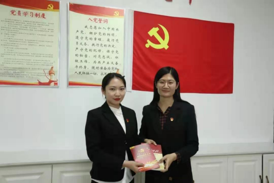 学院党委副书记、副院长沙金同志向伟丽斯同志赠送政治生日贺卡