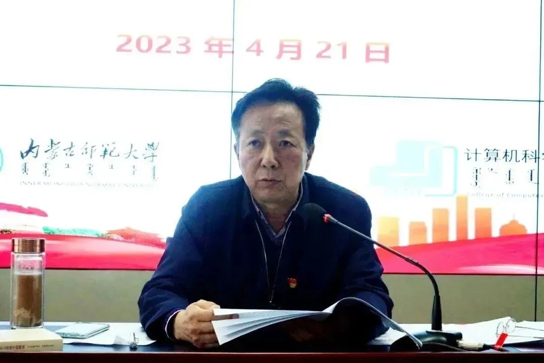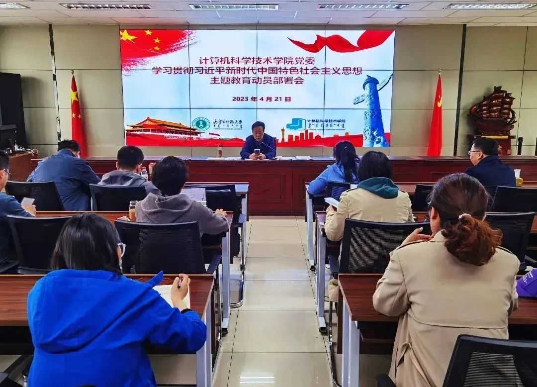 4月21日,Beat365官方网站党委在赛罕校区信息楼会议室召开学习贯彻习近平新时代中国特色社会主义思想主题教育动员部署大会。学院党委书记玉柱主持大会,并作动员讲话,全体党员参加动员部署会。