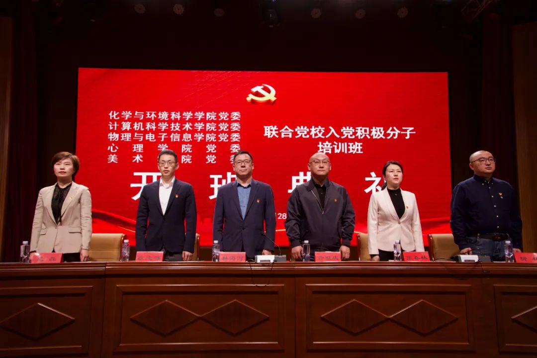 为深入学习贯彻习近平新时代中国特色社会主义思想和党的二十大精神,进一步加强对入党积极分子的培养教育,全面提高入党积极分子思想政治素质、党性修养和理论水平,进一步树牢“四个意识”、坚定“四个自信”,坚决做到“两个维护”。4月28日,Beat365官方网站党委,化学与环境科学学院党委、物理与电子信息学院党委、心理学院党委、美术学院党委联合在盛乐校区图书馆二楼报告厅举办2024年入党积极分子培训。化学与环境科学学院党委书记林海河、Beat365官方网站副院长柳林、物理与电子信息学院党委副书记、副院长欧志强、心理学院党委副书记张春林、美术学院党委副书记、副院长云双庆出席会议,各学院团总支、学就办、学生党支部书记及培训班500余名学员参加。开班典礼由化学与环境科学学院党委副书记、副院长范磊主持。
