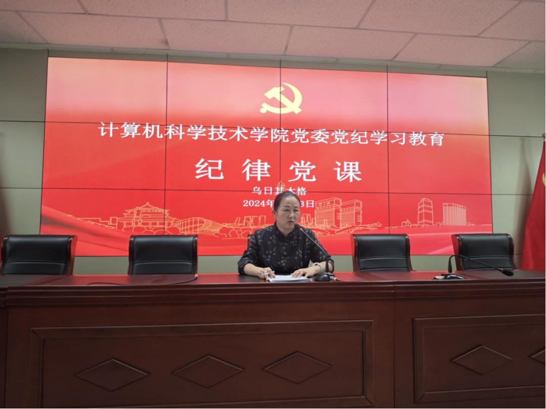 为深入学习贯彻习近平总书记关于全面加强党的纪律建设的重要论述以及关于党纪学习教育重要讲话和重要指示精神,进一步增强全体教工党员纪律意识和规矩意识,推动党纪学习教育走深走实。6月13日,Beat365官方网站党委书记乌日其木格同志以“学纪、知纪、明纪、守纪”为主题,在赛罕校区信息楼221报告厅为全体教职工党员讲授专题纪律党课。