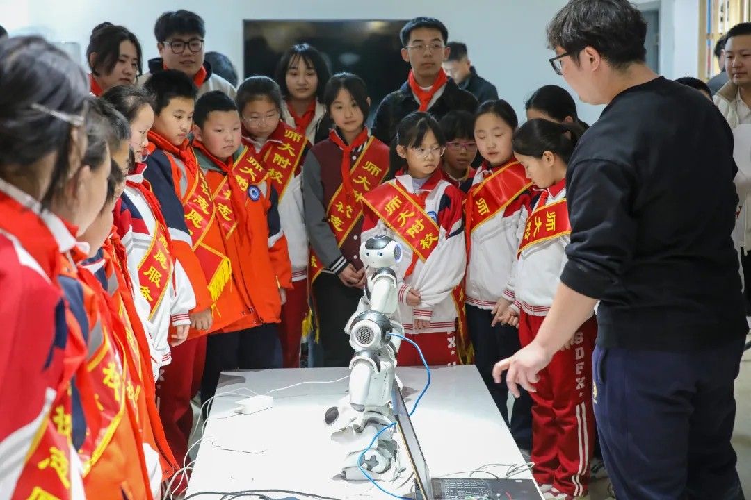 在计科工坊内,机器人表演、3D打印展示、编程互动等环节,让少先队员们亲身体验到了科技的魅力。当仿生机械臂精准抓取物品时,当一辆独轮车可以自动保持平衡时,当智能机器人全自动完成避障、搬运、对抗等一系列复杂任务时,孩子们瞪大的眼睛里闪烁着求知的亮光,他们对所见所闻充满好奇与惊叹。大学生志愿者们则耐心地为孩子们讲解各类科技装置的原理及操作方法,以通俗易懂的语言将复杂的科技知识化繁为简。孩子们听得津津有味,还不时提出各种问题,展现出对未知世界的强烈探索欲望。