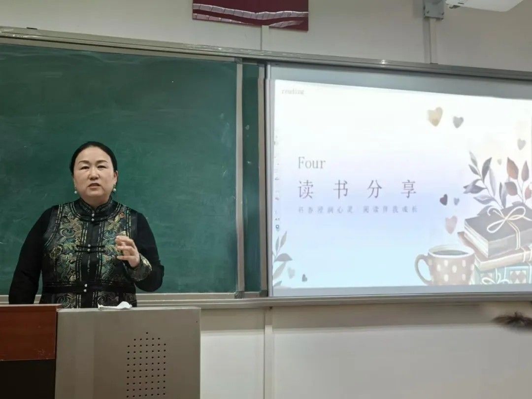 乌日其木格书记为同学们分享了《迎秋的草尖》并在总结时谈到,本次分享会搭建了思想碰撞的有效平台,通过师生共读既深化了专业认知,也拓宽了人文视野。她希望班级内持续推进"书香校园"建设,经常性开展主题读书活动,鼓励学生在数字时代保持深度阅读习惯,将经典著作中的智慧转化为成长养分。