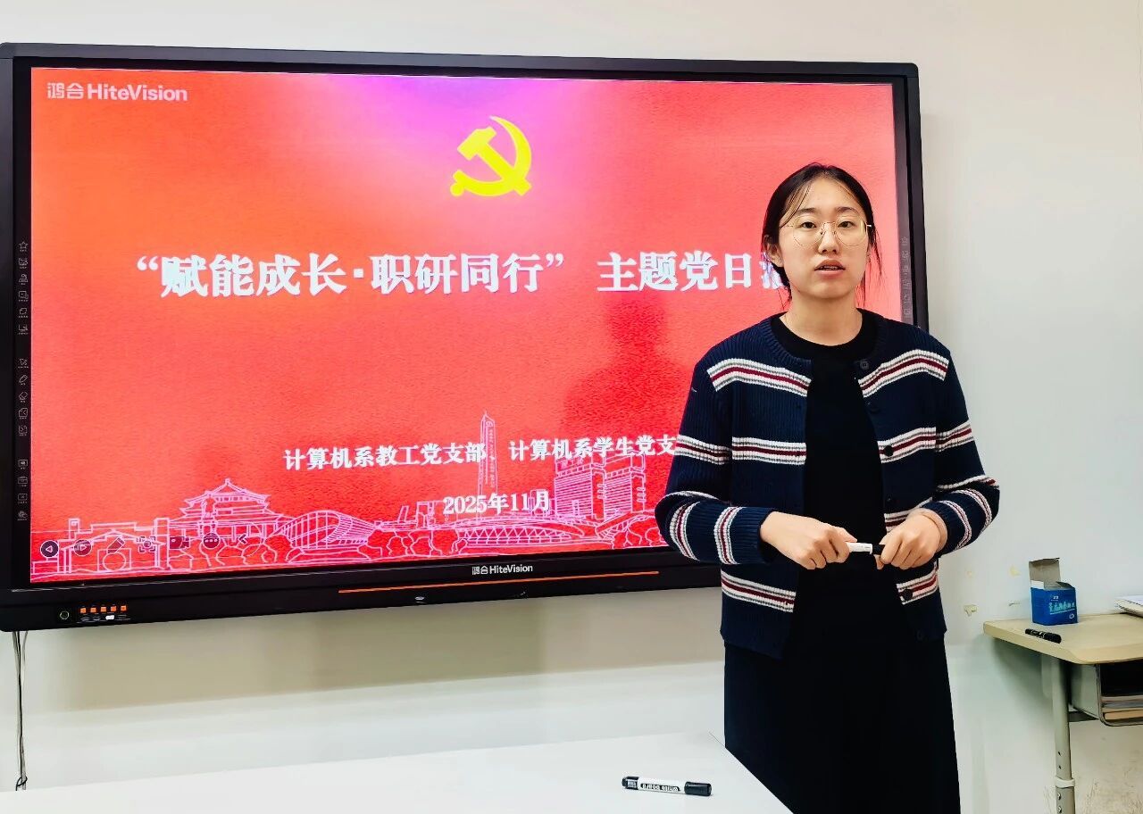 毕业季面对就业的关键抉择,不少学子倍感迷茫。为切实解决学生成长痛点,发挥教工党支部教学优势与学生党支部朋辈作用,2025 年 12 月 2 日上午 9 点,计算机系教工党支部联合学生党支部在理工楼 813 教室,开展 “赋能成长・职研同行” 主题党日活动。计算机系教工党支部书记苟燕、教师党员萨茹拉、王素坤,学生党支部书记陈红以及计算机系2022级学生党员参加本次活动。